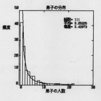 最初に設定した目的は3つある.すなわち@弟子の平均人数はどれくらいか,また世代を経るごとに子孫の増えていく割合はどれくらいか.A研究者が弟子を養成するピーク年齢はあるか,あれば,何歳か.そして可能ならばB研究の流れが少しは掴めるか.である.