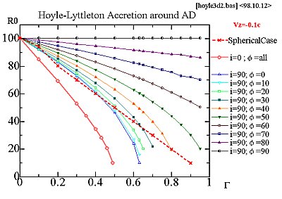 上の図は,ホイル=リットルトン降着半径RHLで規格化した
