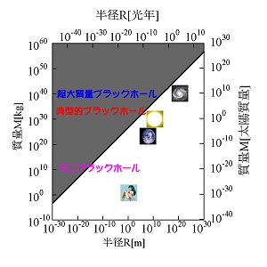 | 超大質量ブラックホール | 1億太陽質量 | 2天文単位 | |