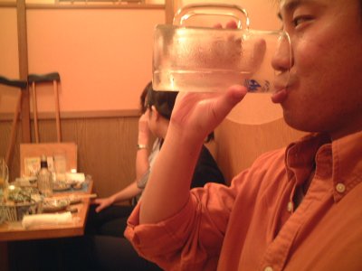 この居酒屋でしこたま飲んだ後で, お嬢さま方がアイスクリームを食べたいとご所望され, ふたたび大街道をアイスクリーム(とドリンク)のある店を探して歩き回る. 気づいたら,NAOの某SaKaMoToさんもご臨席賜っていた. 阪本さんご推薦のベイリーズ(だったっけ,アイリッシュウィスキーのカクテル)で, しっかり酔っぱらってしまった.美味しくてコクもあり飲みやすいカクテルだった. この日,2次会の後で宿に戻ったのは,それでも早めで12時ぐらいだっただろう. でも,お兄さま方お姉さま方は予想通り3次会へと行かれたそうだ. 2日目の夜も,店が違うだけで,ほとんど同じパターンだった… |