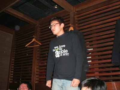 おそらく、後半の卒業生へのプレゼントタイムのときに、 説明しようと立ち上がったんだけど、みんな話を聞いてくれなくて、 拗ねている川田クン。 |