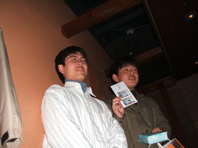 大西クン(宇宙研)と道頭クン(天文研)。 今年はこの2人が学生の牽引役になってくれた。 (美味しいとこは大西クンがもっていったが)。 ご苦労さんでした。 |