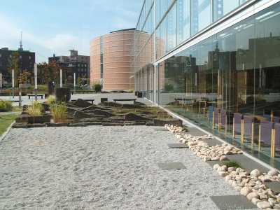 |  | コンベンションセンターの庭。 やっぱりだだっ広い。 初日は体調がまだいまいちだったので、 庭が見える机に陣取って、半日ほど計算をしていた。 学会会場では講演を聴くか人と話せ、と人には言ってはいるが、 紙と鉛筆の人間にとってはまとまった時間が取れるチャンスでもある。 午後の半ばぐらいに、最初のお仕事: 日本天文学会百年史の編纂委員会が1時間ほどもたれた。 尾崎委員長や若い人は頑張ってくれているので、 ぼくたちも頑張らなければいけないなぁ。 |