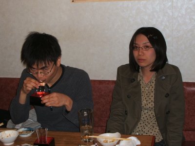 |  | 別に嬉しくもないツーショット。 前日の夜は体調もよくなかったしクタクタだったので、 札幌についてすぐ、駅前の居酒屋に入った。 毛ガニの頭(足が取れたモノで安い)は安かったけど、 水晶豆腐はあまりいただけなかった。 ビールも2,3杯呑んだだけで1時間でお開き。 |