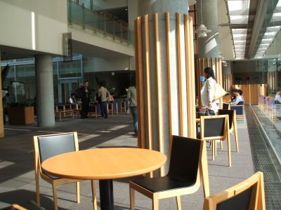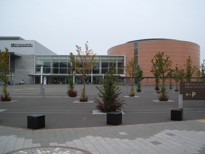 |  | コンベンションセンターの内部。 ほんとにだだっ広い。 まぁ、居心地のいい椅子があちこちにあったのはよかったけど。 前日札幌入りしたときは寒かったが (予想と違って最初の夜が一番寒かった)、 学会初日はきれいに晴れて、 コンベンションセンターの中も温室状態だった。 |