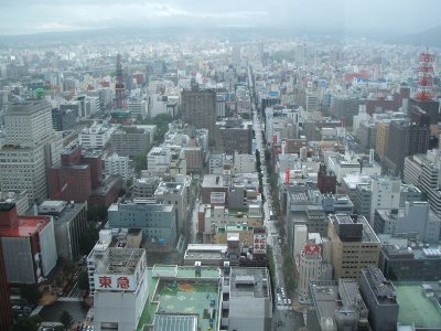|  | JRタワーT38で。 最終日、帰り道に札幌駅によって院生たちと昼を食べた後、 駅のJRタワーT38に上がってみた。 生憎の小雨模様で遠くは見えなかったが、 まぁ、唯一、ミニ観光である。 |