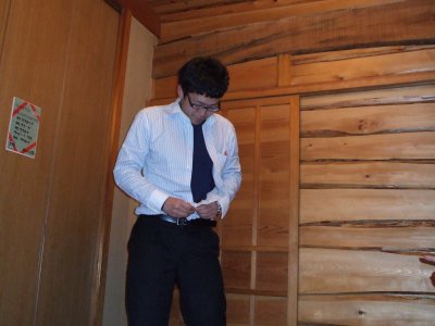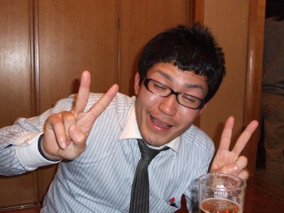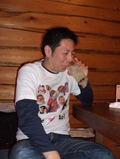 主催者件主賓? 着ているTシャツは卒業記念らしい。 人のことは言えないが、 ここまでくると笑うしかないかも。 |