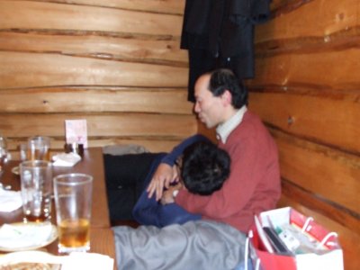 | 金沢へ追い出される渡會くん主催の“追い出しコンパII?”が、 国分のろちんで開催。 もともとは八尾でカラオケモードが予定されていたようで、 ちょうどスタッフの送別会が国分であって、 ダブルブッキングしてしまい、参加できないところだったが、 国分で呑み会に変更になったので、2時間遅れで50mほど駆けつけた。 しかし、最後の最後ということもあって、かなり呑んでしまい、 久しぶりのJR経由になってしまった。 おまけに、京都駅についても呂律が回らなくって、 タクシーの運転手さんに行き先を理解してもらうのに時間が掛かり、 頭は結構はっきりしていただけに、悲しいやら可笑しいやら(トホホ)。 | |