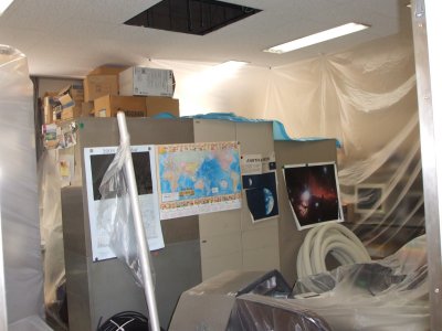 実はこの日、研究室ではエアコンの交換をしていた。 10日ぐらい前に、研究室のエアコンの室外機が壊れて、 エアコンが使えなくなっていた。 幸い、今年度に教員養成棟のエアコンを交換することになっていて、 施設の方で前倒しで交換作業に入ってくれた。 一週間ほど寒かったけど、やっと交換工事が始まったのだ。 ご覧の通り、研究室は使えない状態だったので、 発表会の日だったのが幸いだった。 |