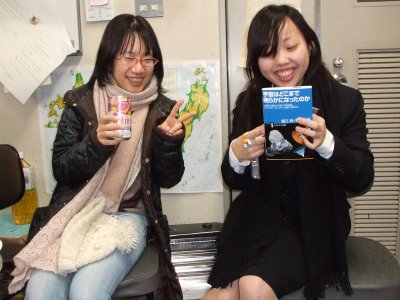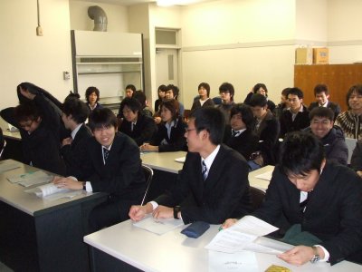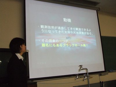 | 2007年度の地学専修の修論卒論発表会が、 2月8日に地学実験室で開かれた。 今年は卒論生の人数が多く、やはり午前10時スタート。 朝は6時ごろに起きたので、かなり眠い。 | |