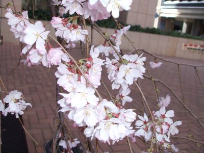 当日は比較的に暖かくて、暖冬の影響からか、 神保町から一ツ橋へ下る道そばでは、桜が咲き始めていた。 |