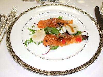 シャンパンに始まって オードブルはサーモン スープは何だったっけ