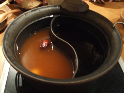 温野菜しゃぶしゃぶ 武蔵境駅の北口方面にある店で、 温野菜しゃぶしゃぶというものを初めて食べた。 ふつうのしゃぶしゃぶは、湯にさらっと肉を通して、 垂れにつけて食べるが、 これは湯ではなくて何種類かのスープが用意してあって、 味の付いたスープに肉や野菜やキノコを通して食べるタイプだった。 ピールも美味しかったし、満足満足。 |