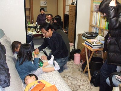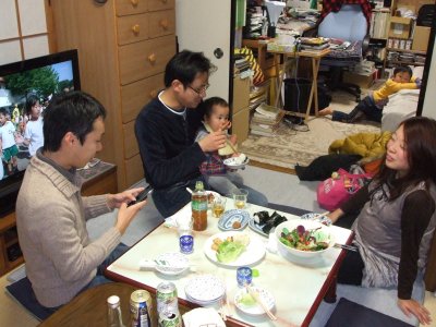 昼間パート 昼の11時すぎに高橋・辻ちゃん一家が来訪。 前の日だかに急に電話があって、 実家(枚方)から実家(愛知)への移動中に寄るとのこと。 何年かぶりだが、相変わらずの様子だ。 |