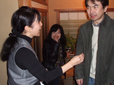 有本+たえちゃん 座る間もなく、続けて、有本とたえちゃんが到着。 世の中狭くて、たえちゃんとは書道繋がりで、 大先輩だったのだが… |