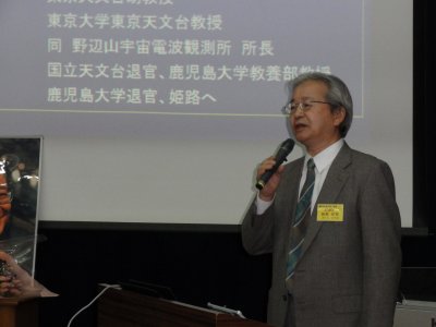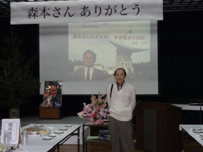 森本さんの天文学 今回は、早めにパーティに入るため、今回は9分と手短な紹介。 ここではじめて聞いたが、なんと、海部さんは 国際天文学連合の次期会長に決まったらしい(驚)。 海部さんは日本人としては二人目である。 |