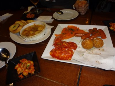 アヒージョその他 前回は満腹だったため、ほとんど食べられなかったけど、 今回は、シェフオススメオードブルからアヒージョまで、堪能。 もちろんワインも、泡白赤と堪能。 しっかし、最初っからワインを飛ばしたので、 200%の酔っぱらいになる。 この一軒しかいなかったはずだけど、最終近くまで呑んで、 情けないことに、京阪かどこかの、 おそらくエスカレータで転ぶという、大失態(泣)。 日本の人々の心の温かさを知った一夜となった。 |