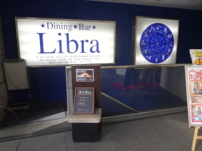Dining Bar Libra お店の前まで案内されて、最初に目に入ったのは、“Dining Bar”の部分で、 おっ”、なかなか美味しそうなとこだなと一瞬思った直後に、 手前の見慣れた(笑)写真に目がいって、そのまま思考ストップ状態。 |