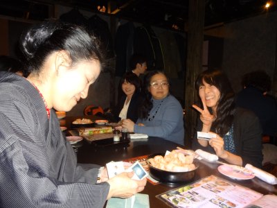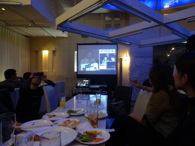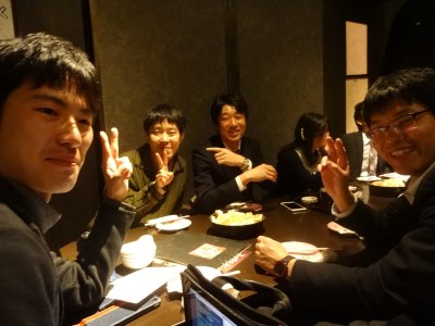 2次会 4時半ぐらいにパーティは終了。まだ外は明るい。 東京や仙台など遠方から参加してくれたOBも居て、 ほんと、お疲れさんでした。 で、ま、当然に2次会の設定もしてあり、 そちらへ場所を移して、飲み直し。 |