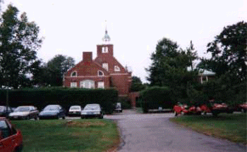 木立の中にたたずむ煉瓦造りの古風な建物群.
