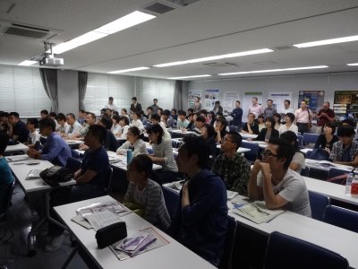 ものすごく多かった昨年ほどではないが、 少ないというわけでもなく、 おおむね例年ぐらいかなという出だしだった。 結局、今年は、高校生や学生の参加者は49名、 教員や父兄その他、一般の参加者も44人で、 合計は193人と、研修室がちょうど満員御礼な盛況となった。