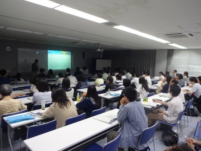 開始直後の研修室の様子で、ほぼ満席状態になった。 |