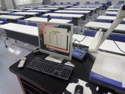 曇り模様でときどき雨の、ほどよい天気で、 今年も8時半には科学館に着いてしまった。 今年もパソコンは持参せず、USBデータのみで、 科学館のPCのデスクトップにコピーなどしておく。 |