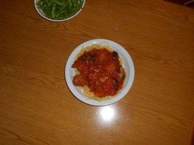 『カリオストロの城』でルパンと次元が喰ってた 肉団子満載のスパゲッティ、できあがり。 |
