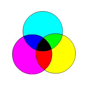 シアンとマゼンタを混ぜると青に,マゼンタとイエローで赤に,