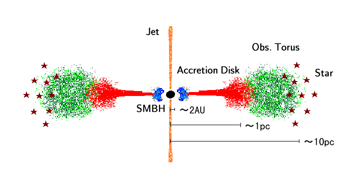 Fig.1.28: Schematic picture of active galaxtic nuclei.