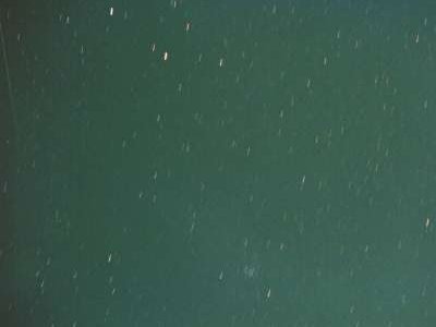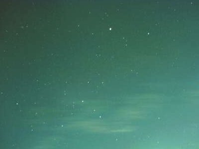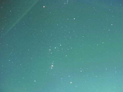|  | おうし座のあたりだと思う(?): 左上にみえるスジは,やはり光が入ったモノかもしれないが, 流星かもしれない(よーわからん) |