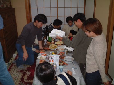 | 20世紀の最後の最後に, サイエンスシェフこと元ちゃんが取り仕切る中, 京の陋屋で世紀末年忘れパエリアパーティが開かれた. | |