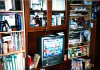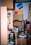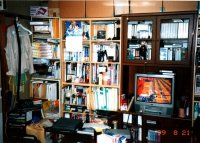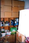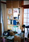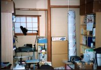 2階のもの置き場状態の領域. ぼくの本だけで,ダンボール箱で50箱を超えた. 職業柄,専門書が多いためだ,と言いたい所だが, 実は,マンガやアニメの資料が多かったりする. 同じ大きさのダンボール箱36個を, 3×3×4に積むと, 巨大な直方体になるのだ.