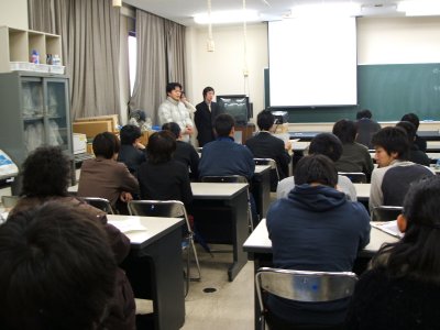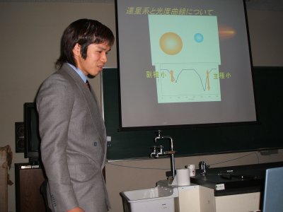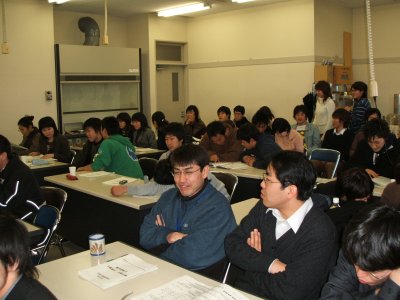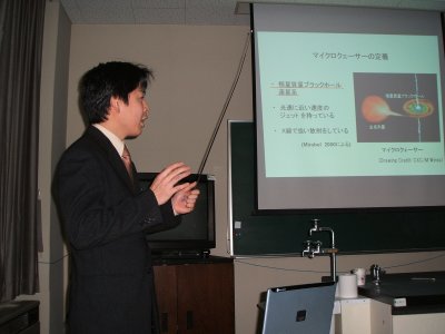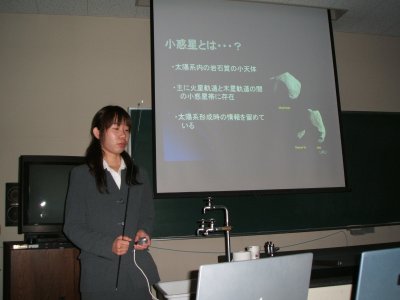 | 2004年度の地学専修の修論卒論発表会が、 2月10日に地学実験室で開かれた。 今年は修士も学士も人数が少なかったため、 午後からの開催となった。 | |