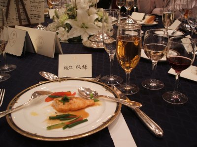 酒と料理 さすがシェラトンというべきか、 最初の乾杯のときのシャンパンに始まり、 ワインもとても飲みやすい赤だった。 料理もほっぺたが落ちそうなくらい美味しかった。 半分も食べられないのがもったいなかったが、 ステーキに至っては、渡辺に食べてもらった(笑)。