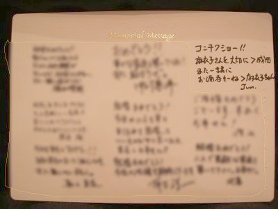 テーブルの寄せ書き そのときの思いを素直に書いてやった。