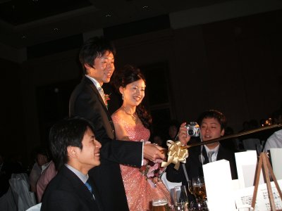| OBの成田直くんと麻衣子さんの結婚式&披露宴が、 神戸は六甲アイランドのベイシェラトンホテルで行われた。 夏に話を聞いて、あっと言う間に当日になった。 中学高校と同級生だったのが、大学時代に再会して、 4年目のゴールインだそうだ。 エエなぁ、羨ましいなぁ、でもまぁ、こっちも 少しだけ幸せのおこぼれにあずかったかも。 | |