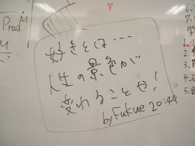 しかし、右端にはゼミの順番が書いてあったり、 左側には数式が書いてあったりする中で、 浮き上がったなかなか異様な雰囲気ではある。