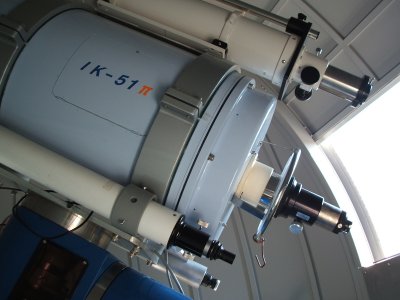 望遠鏡 口径は51cmでうちと同じ(!)。 しかも架台のあちこちは透明なパネルになっていて、 内部のギア構造などがみえる作りになっている。 これは教育的だ。 さすがだ北野高校。 |