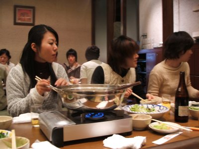 一次会 料理はもつ鍋と、あと、食べ飲み放題。 |