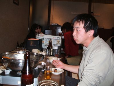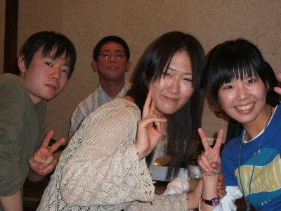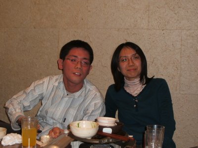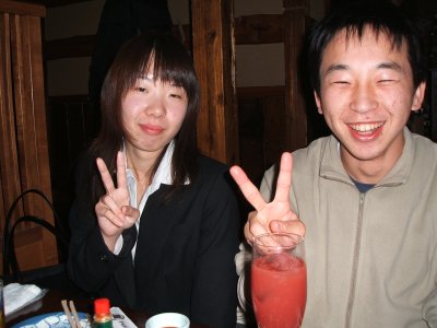 一次会 OBの山田くんと堀さん。 この春に、神戸大学大学院の地球惑星へ進んだ堀さんは、 いま、星形成領域の近赤外データの解析をしているそうだ。 赤外線源のデータをもとに原始星のHR図を描こうとしているらしい。 神戸大学の天文系はアクティブだし、なかなか面白そうである。 |