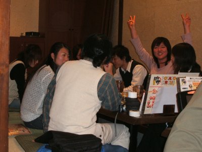 一次会後半 さっきまでいたテーブルで、 こっちも盛り上がっている。 |