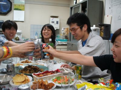暑くなってきたし、各自の手料理を持ち寄って、七夕コンパと相成った。 急遽決まったにもかかわらず、3回生も含め、多数の参加者があって、 3回生トークが時間切れで途中までだったのが惜しまれた。