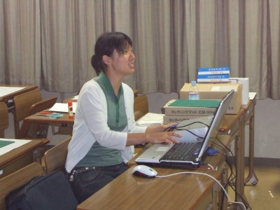 ペーパー分光器を作る前に、 光と色について簡単に説明しているところ。
