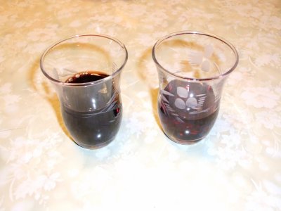 主賓ふたたび グラスに入れてみると色合いも全く違うのがよくわかる。 たしかに新酒は色合いも薄く透明度も高い。 ヌーボーとミディアムを交替交代に呑んだが、 味わいも全然違って、 久しぶりにワインのテイスティングを楽しめた。 |