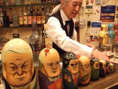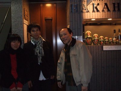 夜のセッション 国際会議の2日目の夜に呑みに行ったとき、 2軒目に寄ったウォッカバーの前で帰り際にパチリ。 おそらく全国的にも珍しいウォッカ専門のバーで、 開店して5,6年ぐらいだったと思う。 マスターのナカニシさんは、以前は 四条にあるロシア料理店キエフのマネージャーをやっていて、 ときどきキエフに行っていた関係で、 こちらにも行きつけ(笑)になった。 ちなみに、フランスのウォッカのなんとかグレープフルーツという グレープフルーツ風味のウォッカが美味しい。 またピロシキと手作りのレーズンバターもお勧め♪ |