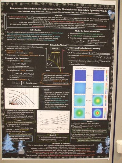 住友さんのポスター 相対論的球対称風の見え方を調べたモノ。 |