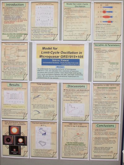 西山クンのポスター 降着円盤風の見え方を調べたモノ。 |