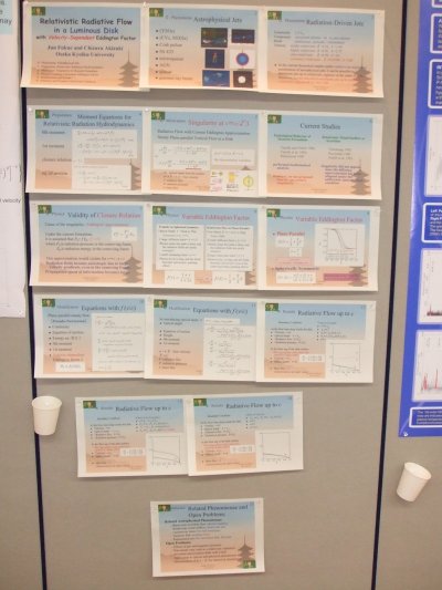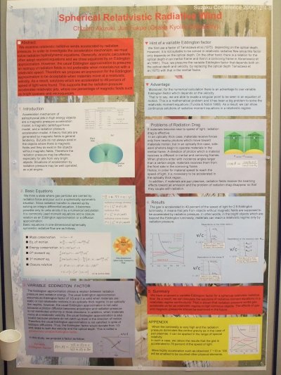 秋月さんのポスター 相対論的球対称輻射流を解いたモノ。 ポスター作成にあたっては、 語るは涙、聞くは爆笑ものがたりだったりする。 |