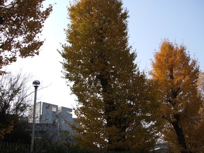 当日はすっごい冬晴れの日。通りのイチョウがまっきぃきぃで、
